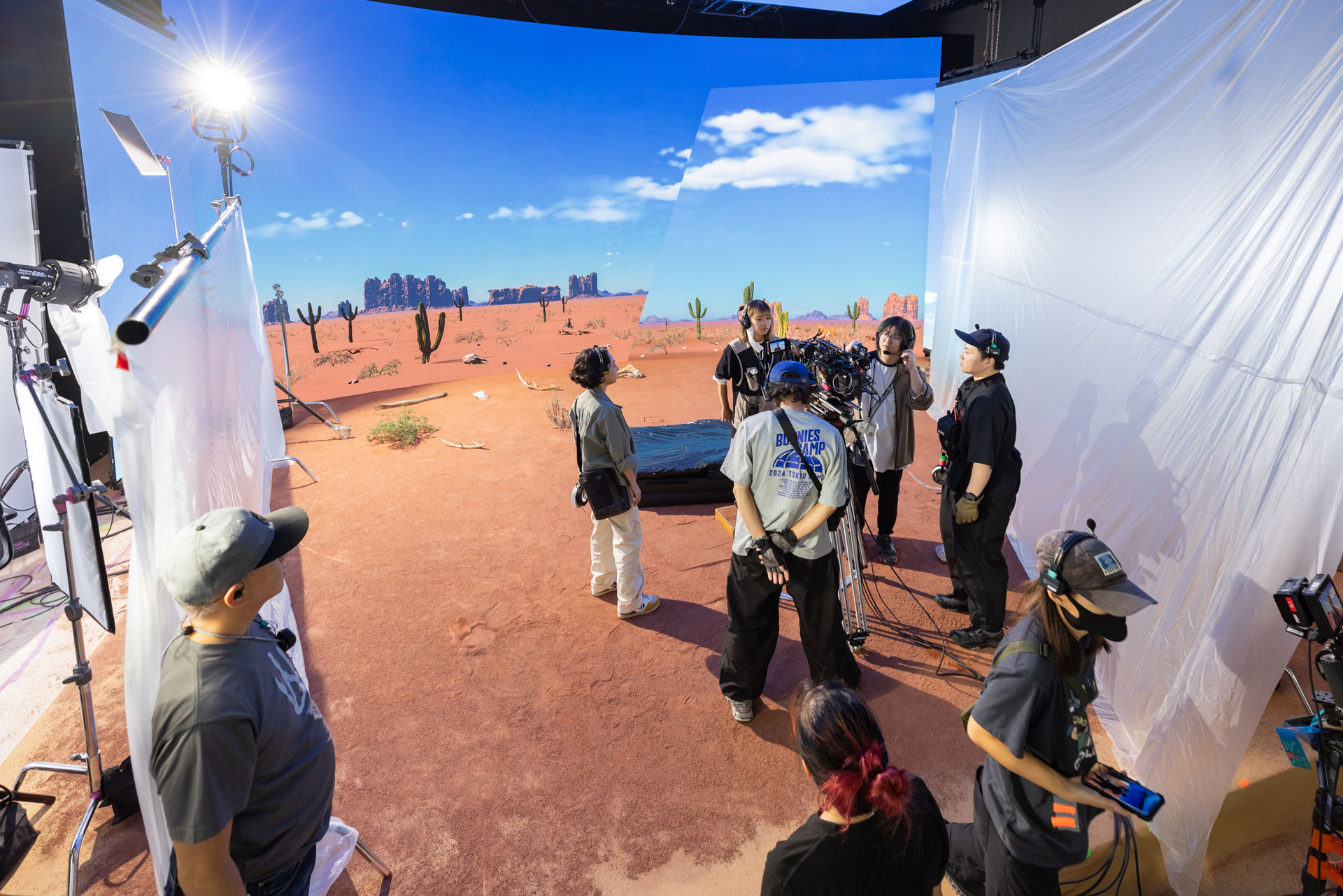 勝村 「自分たちはコンテンツを提供することが軸足なので、ハードを提供するヒビノにソフトの相談があったときに声をかけていただいて、結果的にこれまで関わることのなかったお客様とご一緒できています。ほかにも、ライブ用の映像を Hibino VFX Studioやstudio PX ANZEN(別ウィンドウで開きます)で撮ることも多いです。スケジュールが限られていて、天候予備日もなく、撮りたいロケーションの数が多いとなると、その解はヒビノのバーチャルプロダクションスタジオしかないので。RECOとしては一番助けてもらっている部分です」